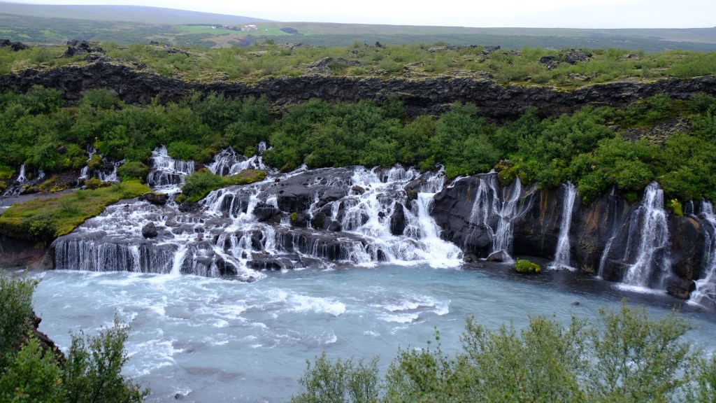 Partiamo dal campeggio verso ovest lungo la 518 per arrivare subito alle cascate Barnafoss con uno sviluppo in orizzontale.