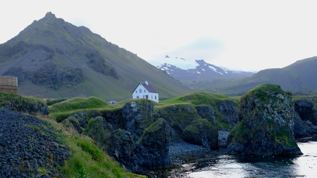 Procediamo quindi verso la penisola di Snæfellsnes, situata nella parte occidentale dell’Islanda, con la sua incredibile varietà di paesaggi. Si estende per circa 90 Km e ospita un concentrato di meraviglie naturali che includono vulcani, campi di lava, ghiacciai, cascate, spiagge e scogliere spettacolari. Al centro di questa penisola si erge il maestoso vulcano Snæfellsjökull, che domina l’orizzonte e che, con il suo ghiacciaio, è una delle attrazioni più famose della zona, reso celebre da Jules Verne come il punto d’accesso al centro della Terra nel suo romanzo Viaggio al centro della Terra.