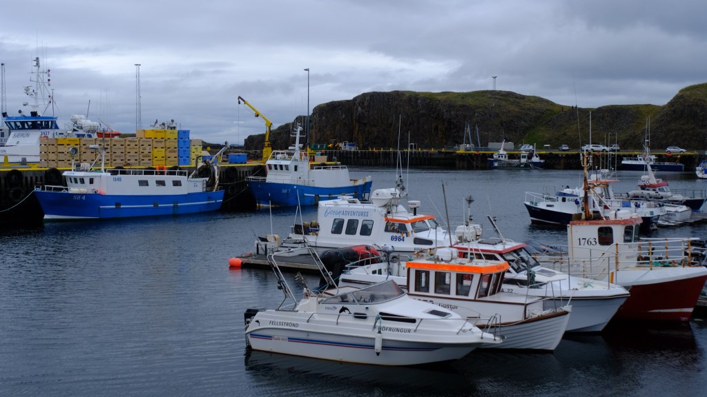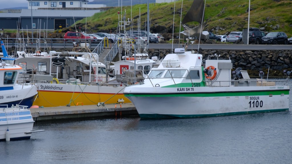 Proseguiamo poi costeggiando la costa nord della penisola di Snæfellsnes fino alla pittoresca cittadina di Stykkishólmur, punto di partenza del traghetto per i fiordi dell’ovest, con le sue casette di legno colorate, e le barche che galleggiano nel piccolo porto; il porto è chiuso da un isola con un faro da cui si ammirano gli isolotti circostanti.