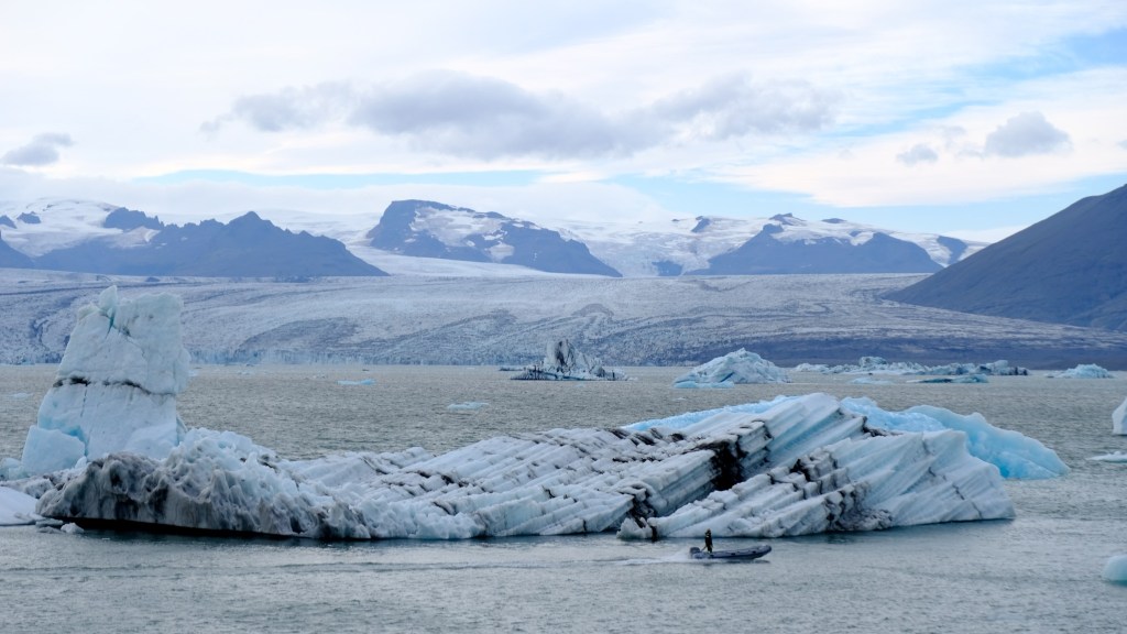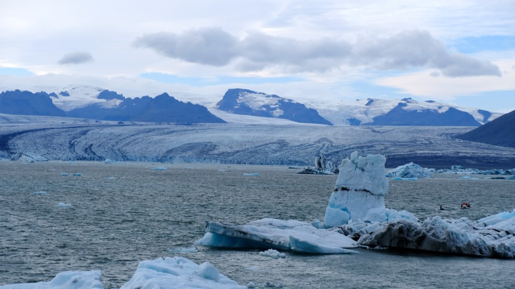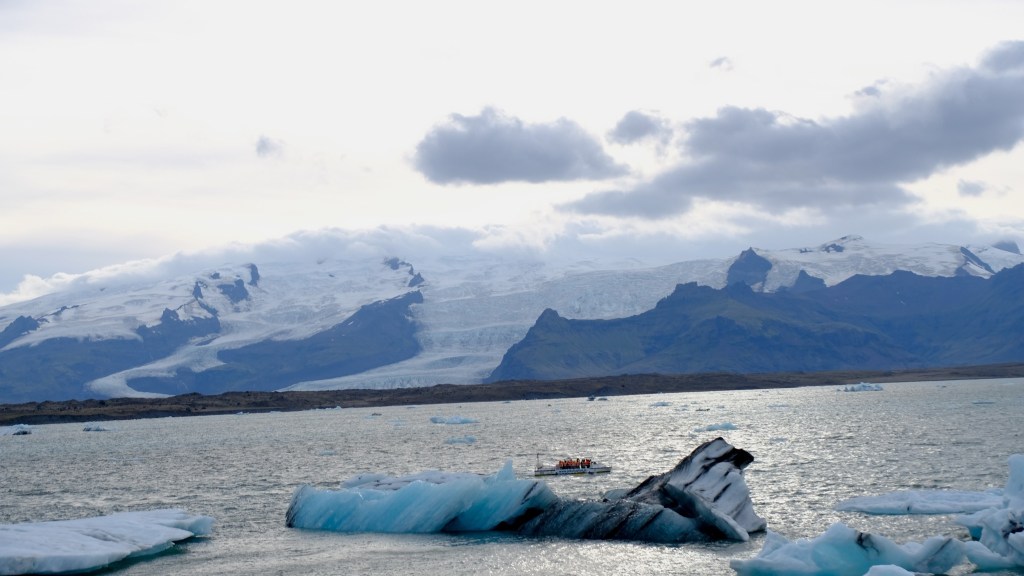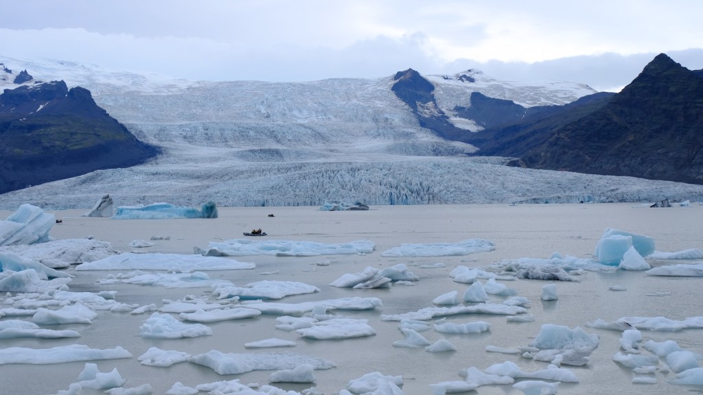 Qui si possono effettuare escursioni in gommone o mezzo anfibio per osservare gli iceberg da vicino.