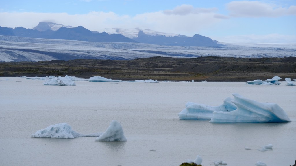 Continuiamo sulla Ring Road fino al lago Fjallsárlón in cui galleggiano numerrosi iceberg; è un crescendo.