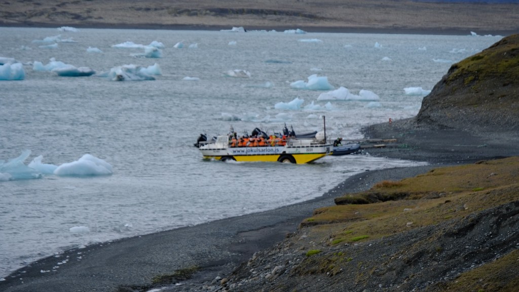 Ultima tappa dei ghiacciai al lago Jökulsárlón, una delle gemme d’Islanda, con i suoi iceberg che escono verso il mare da un canale per poi andare ad infrangersi su di una spiaggia nera.