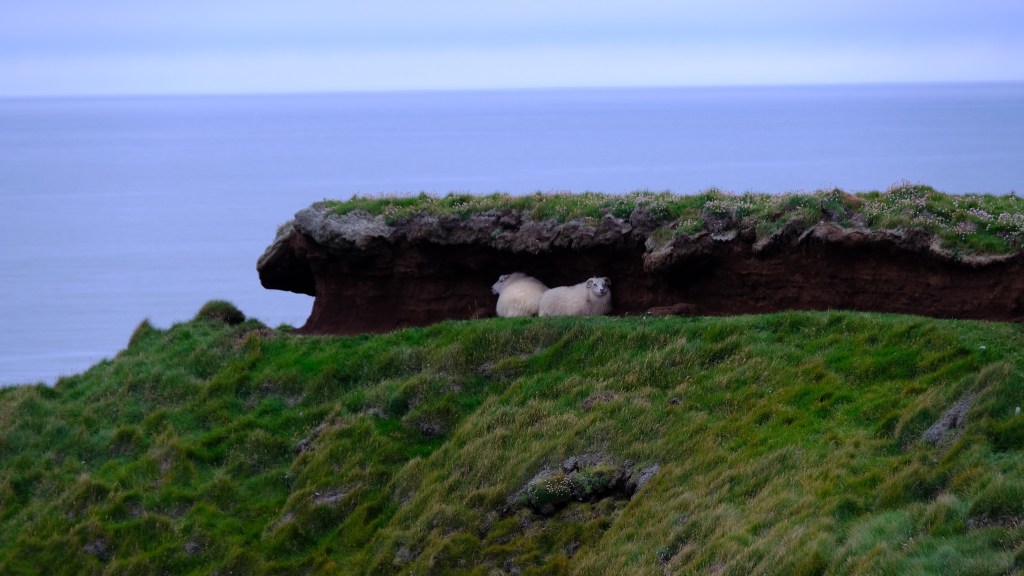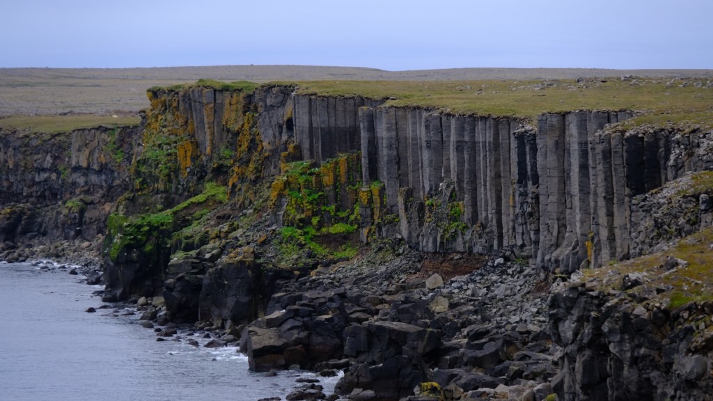 Imbocchiamo la pista 869 verso l’estremità della penisola incontrando sule, pecore rintanate sulla scogliera, basalti colonnari ed infine, dopo circa 40 Km da Þórshöfn, il faro in località Fontur.