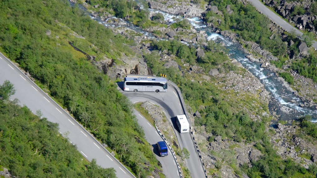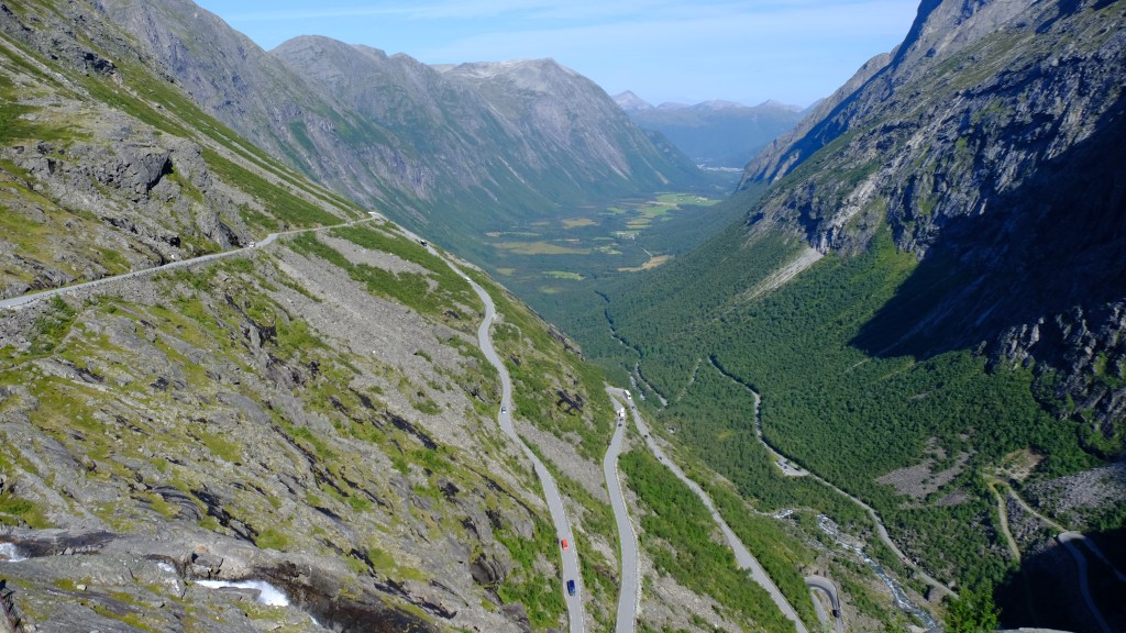 Qui imbocco il tratto della 63 in direzione Åndalsnes, strada di montagna chiamata anche Trollstigen (la scala dei Troll), che risale la valle di Valldal e poi quella di Meiardal fino al passo sull’altopiano Trollstigplatået per poi tuffarsi in una discesa mozzafiato con 12 tornanti per scendere dall’altro versante.
