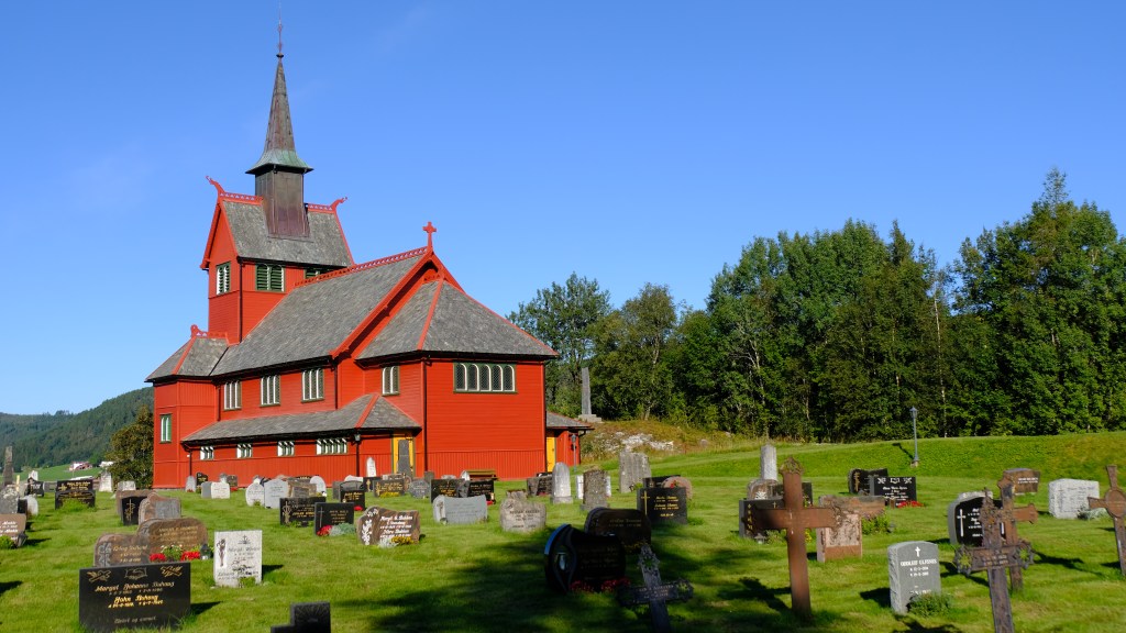 Faccio poi una deviazione per visitare la Stavkirke di Kvernes, del XVII secolo coi sui caratteristici sostegni esterni ed un’adiacente chiesa bianca più moderna, e poi da vicino a Kristiansund prendo il traghetto per Tømmervåg per fare la strada costiera 680.