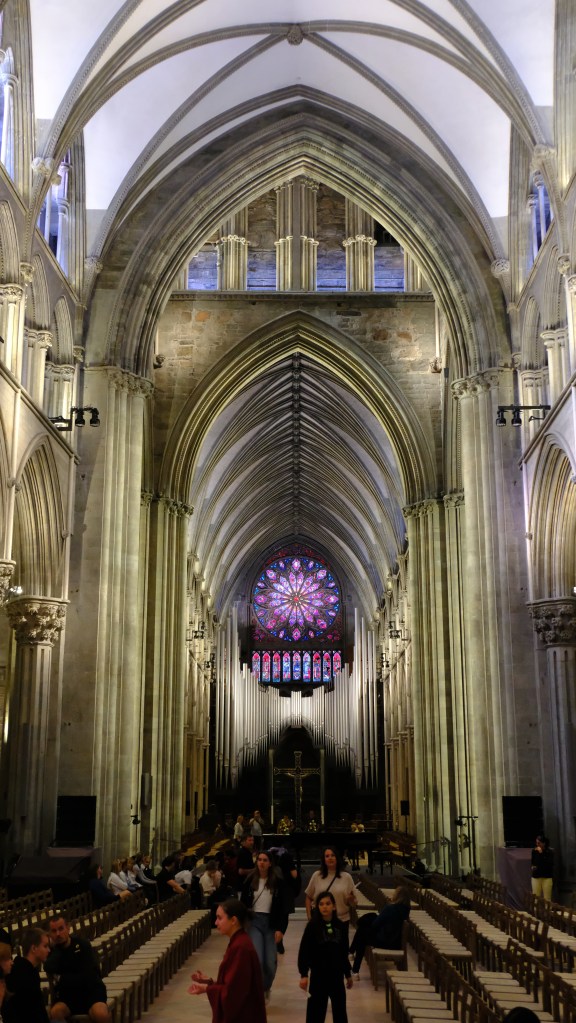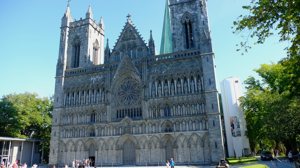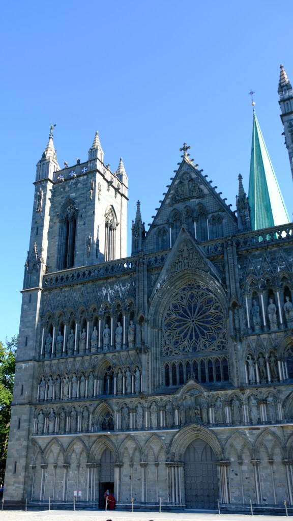 Direzione Trondheim per visitare la famosa cattedrale ed il centro. La cattedrale, la Nidaros Domkirke, una delle più importanti del nord Europa, fu fondata nel XII secolo ma ricostruita e restaurata più volte a seguito di incendi. Particolare il colore dovuto all’uso di steatite blu e grigio-verde. Sarà famosa ma da buon milanese non aggiungo altro…