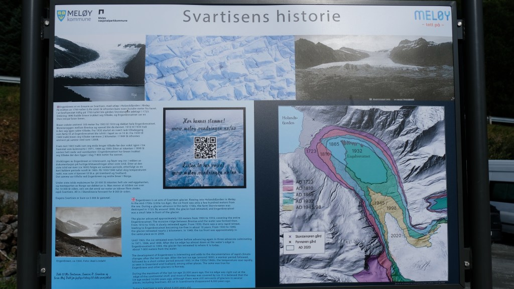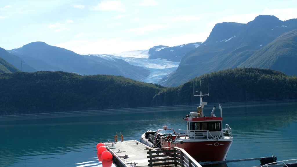 Prendo il traghetto per Forøy con comodo alle 9:20 ed una volta sull’altra sponda la destinazione è il molo del battello per attraversare il fiordo e dirigersi al ghiacciaio Svartisen, il secondo per estensione della Norvegia. Qui una lingua del ghiacciaio scende verso il laghetto che costeggia il fiordo. Già avvicinandosi si godono delle bellissime vedute.