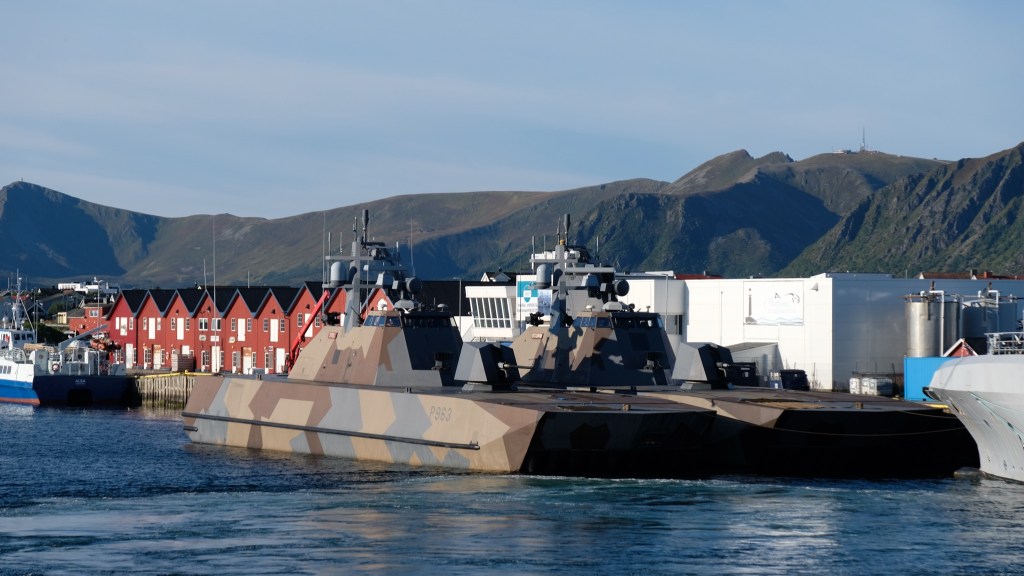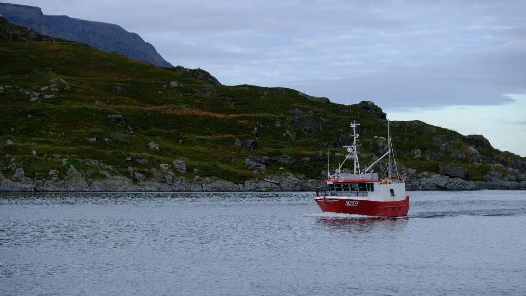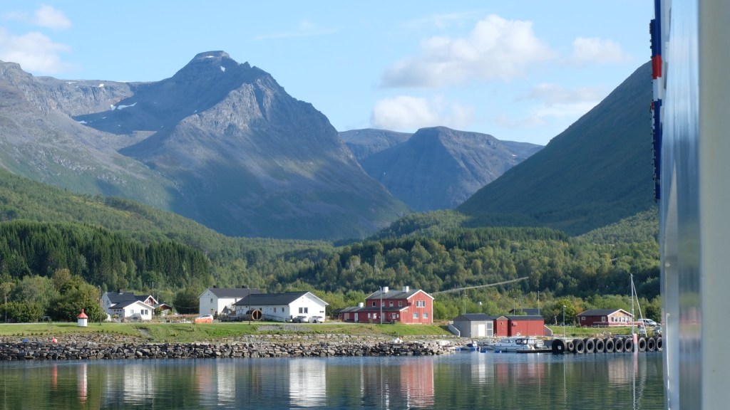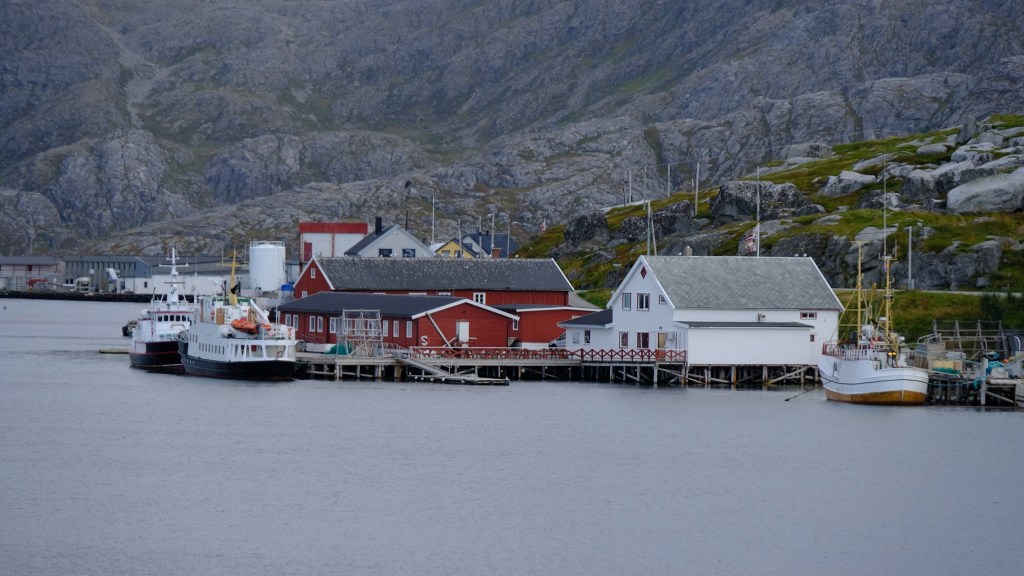 Prendiamo il primo traghetto della mattina da Andenes a Gryllefjord sull’isola di Senja. Andenes è anche un importante base militare come testimoniano le imbarcazioni ancorate nel porto.