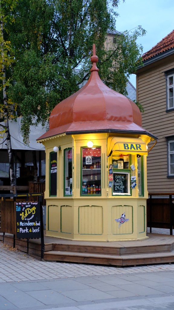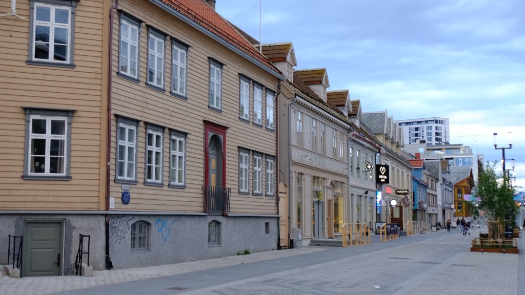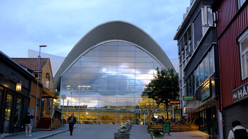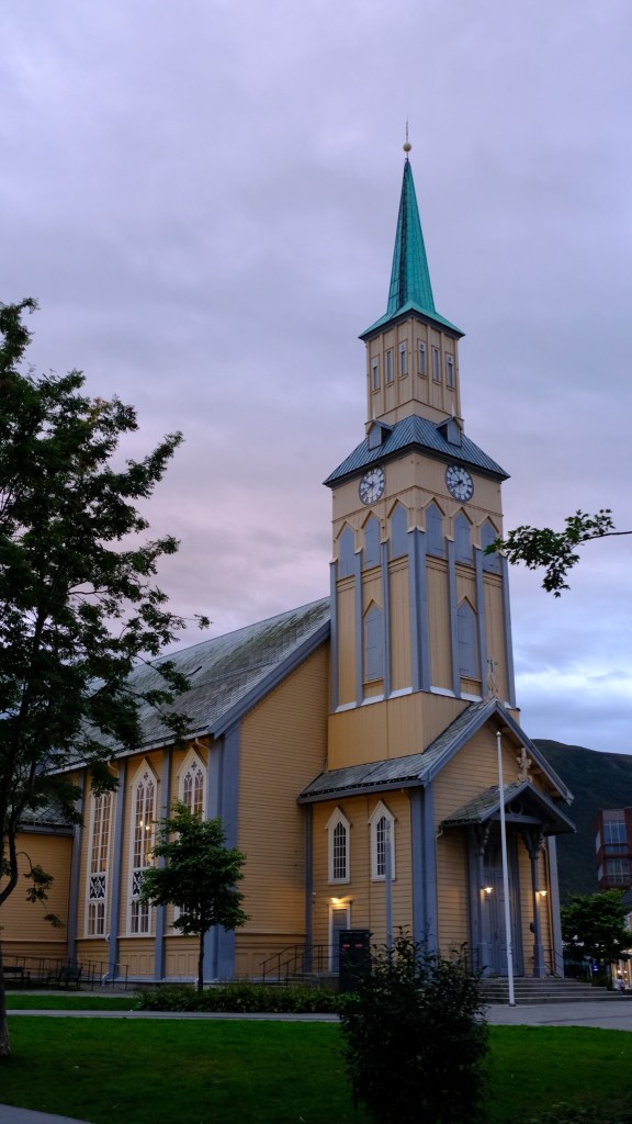 Nel tardo pomeriggio arriviamo a Tromsø dove, dopo aver preso posto al campeggio, ci rechiamo in autobus in centro per una breve visita e la cena. Tromsø era pomposamente soprannominata la Parigi del Nord dal momento che offriva un’intensa vita mondana. Può vantare la cattedrale protestante più a nord di Europa, alcuni musei, una bella biblioteca e molti ristoranti caratteristici.