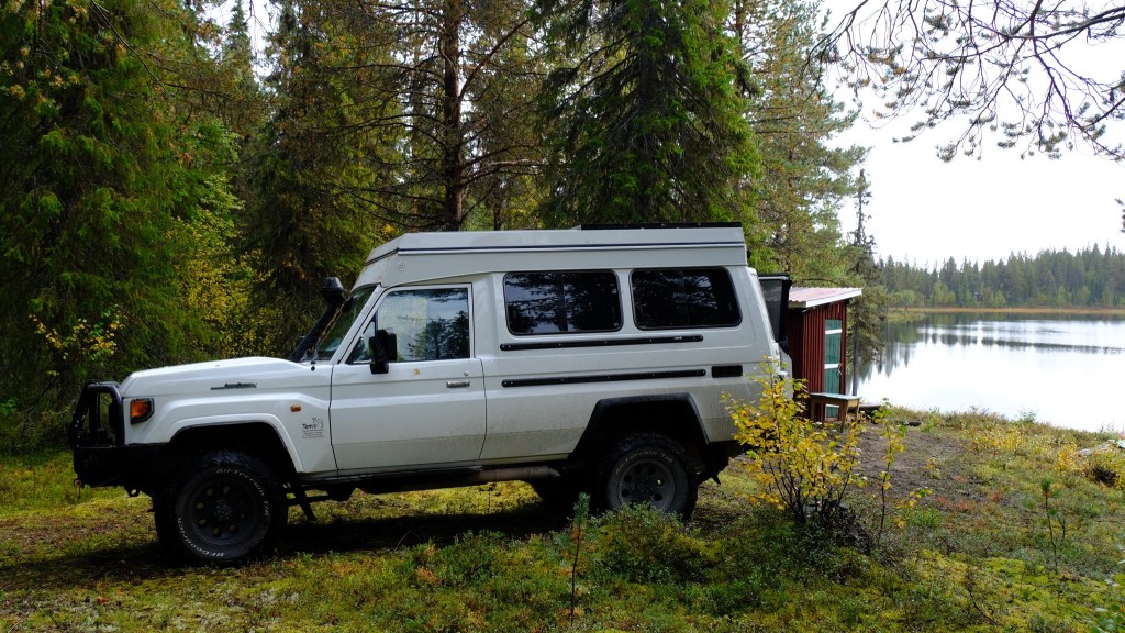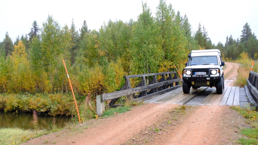 Iniziamo quindi a percorrere il percorso Trans Euro Trail Sweden, TET, sezione 16, un percorso per lo più su strade sterrate dedicato a moto da enduro che si può percorrere anche in jeep, salvo qualche sezione dove si trovano dei blocchi come massi o dossi di terra non aggirabili (link a TET Svezia). La tundra inizia a lasciare spazio alla taiga, caratterizzata da ampie foreste di conifere.