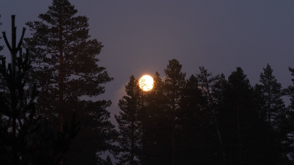 La fortuna ci assiste e nonostante il cielo non limpido, riusciamo ad avvistare l’aurora boreale nei brevi momenti in cui la luna è coperta ed il cielo verso nord è sgombro da nubi.