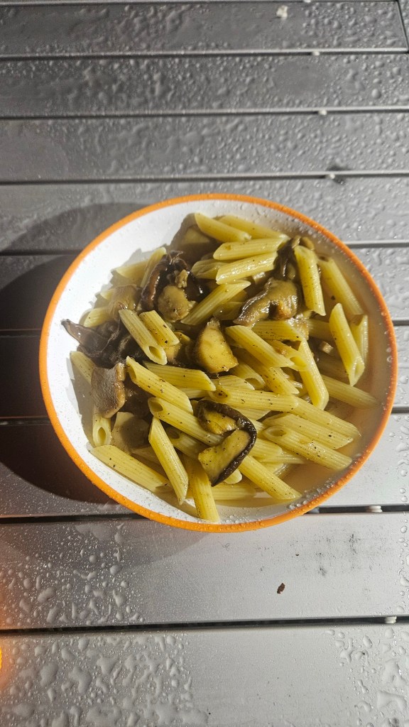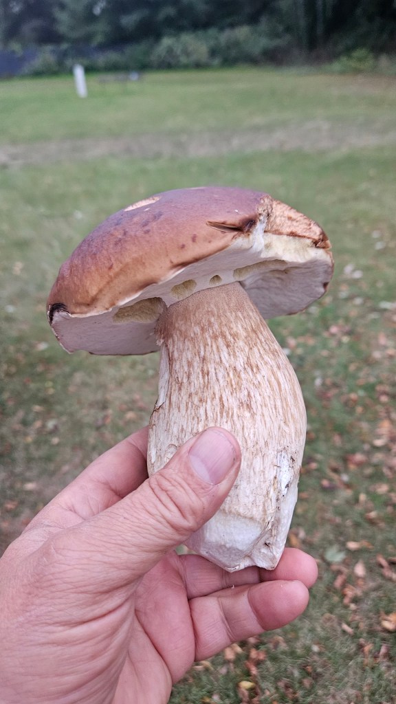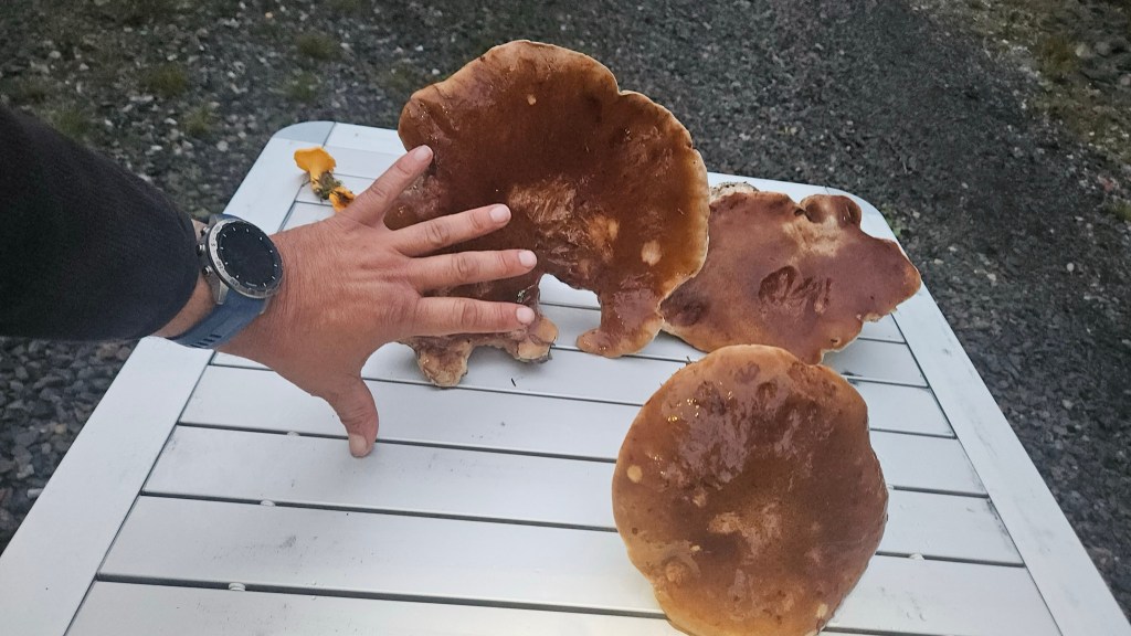 Sul tardi mi infilo in una stradina laterale, forse tracciata da boscaioli, dove la preziosa App Park4night suggerisce esserci un punto di campeggio nella natura. Addirittura la piazzola è costellata da porcini enormi che non posso esimermi dal raccogliere, trifolare e mangiare con la pasta, davanti al solito fuoco.