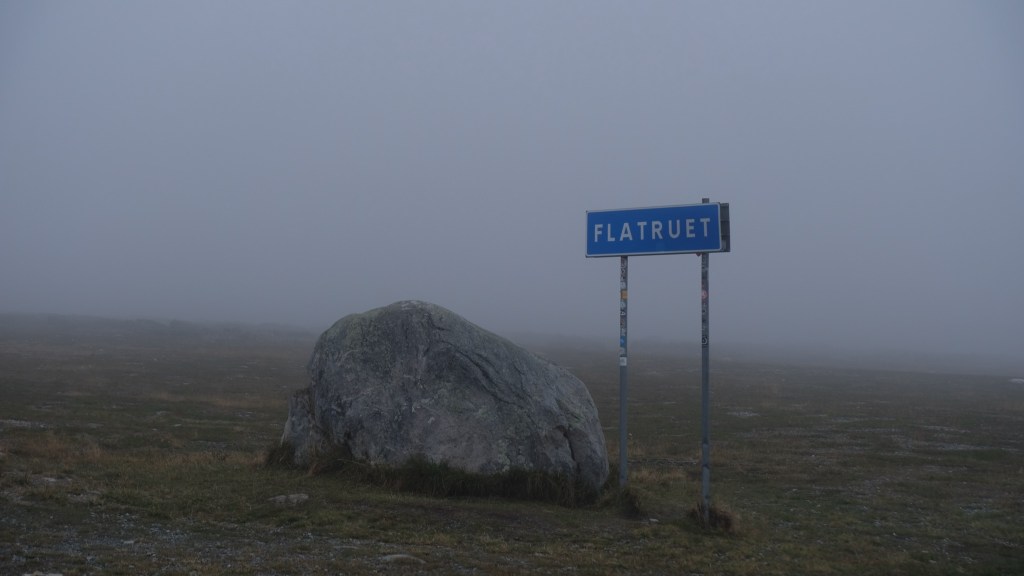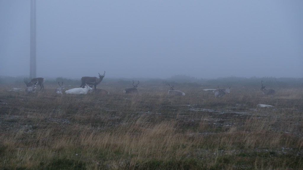 Arrivo a Flatruet, una collina piatta in un paesaggio brullo a circa 1000m di altitudine, forse la strada più alta della Svezia. C’è nebbia e si avvistano renne che poltriscono a lato strada. La zona è famosa per dei burroni scavati dai ghiacciai quando si sono ritirati e per delle pitture rupestri; nebbia e bassa temperatura mi scoraggiano ad effettuare qualsiasi escursione.