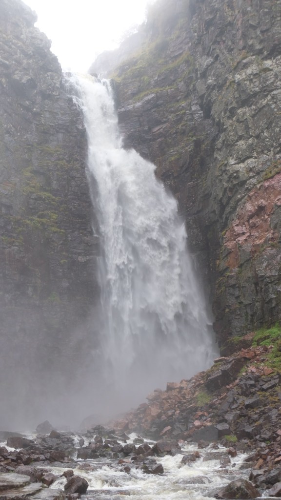 Prendo poi la deviazione per la cascata Njupeskärs, in un bel parco dove effettuo la breve escursione per la cascata (circa 4Km andata e ritorno).